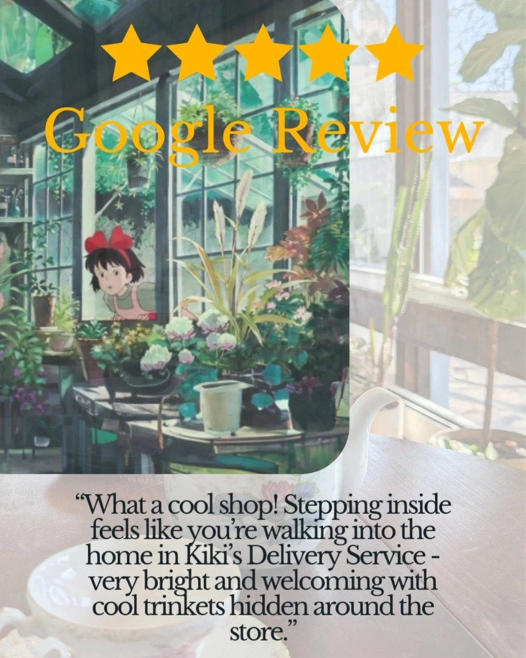 Join us for a lovely pot of tea in our warm, antique and plant filled, sunlit space. Come with friends or enjoy the company of a tea pet. See our full current menu of tea and snacks here.